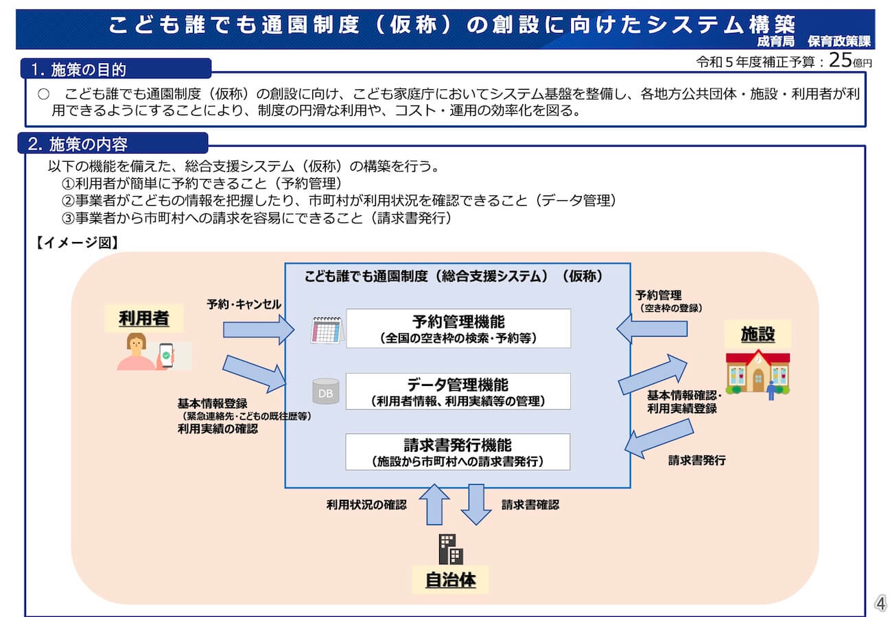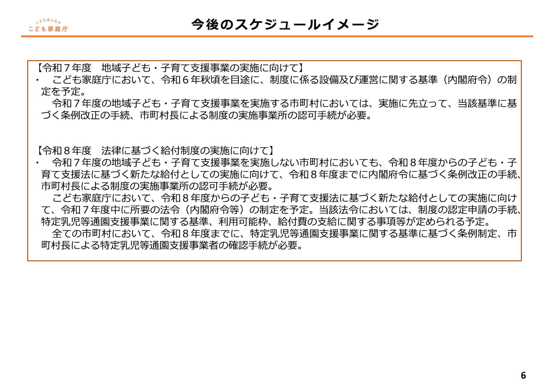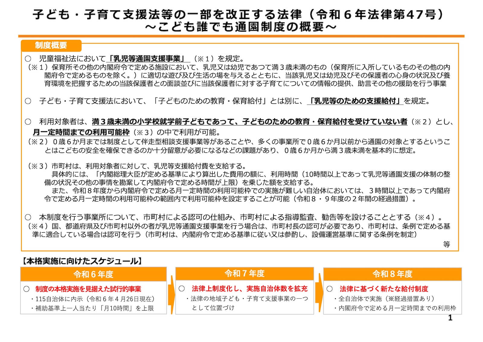- 「こども誰でも通園制度(乳児等通園支援事業)」試行事業開始/25年度地域子ども・子育て支援事業として制度化(定款に記載が必要)と「地域子育て相談機関」の役割も期待され、26年度からは給付事業として制度実施される予定。