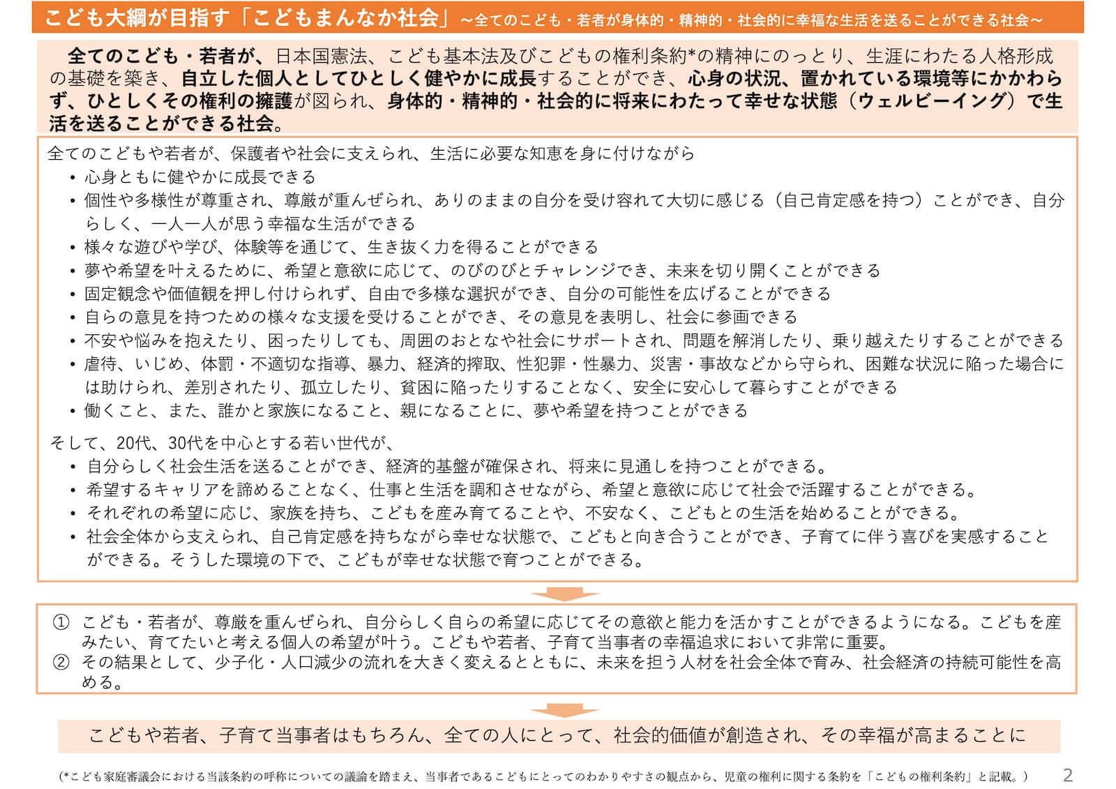 ~ひらがな表記の「こども」とは、「18歳や20歳といった年齢で区切るのではなく、全ての子どもに必要なサポートが途切れないよう、心と身体(からだ)の発達過程にある者」を表現しています。