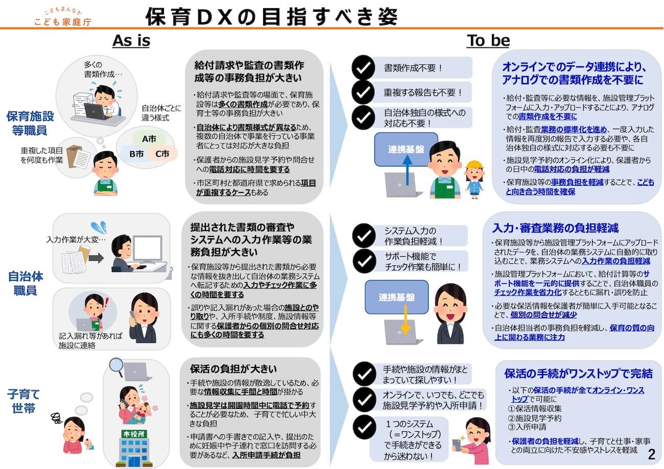 業務負担軽減のための保育DX導入による、負担軽減と全国統一のデータベース化が始まりました。