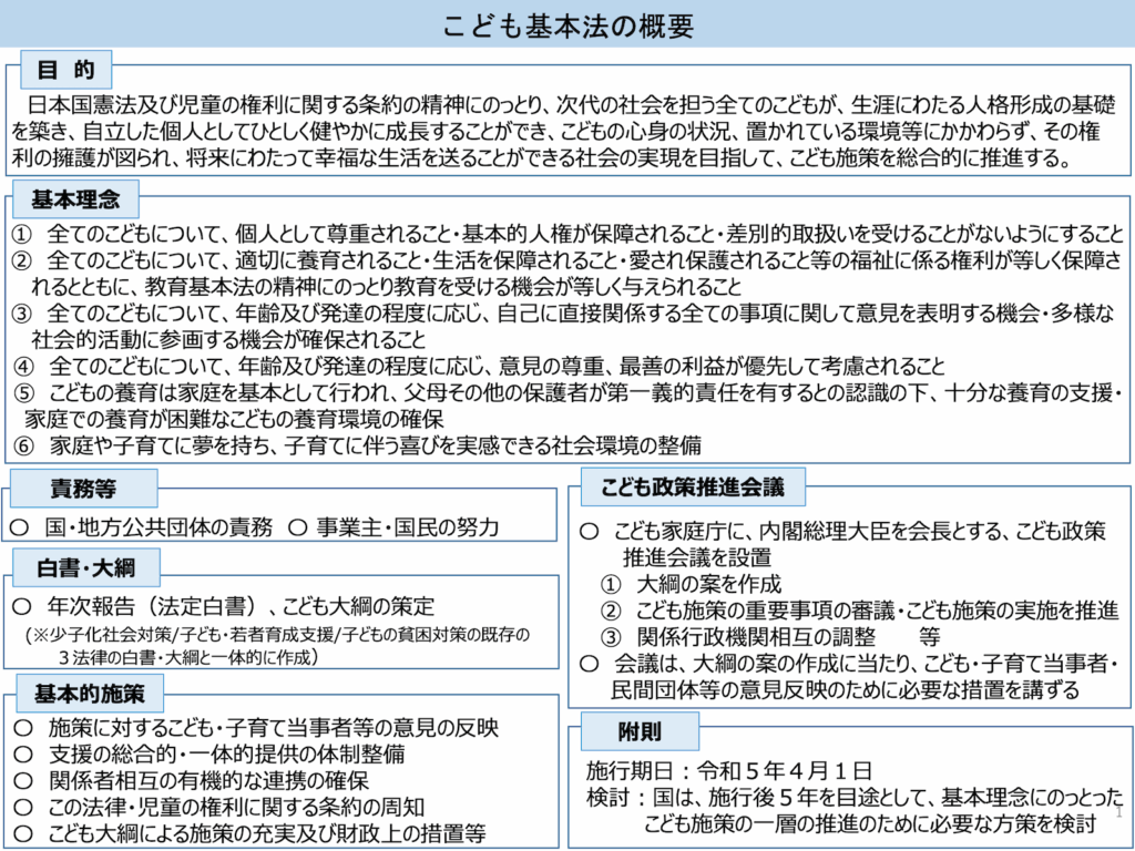 2023年4月に「こども家庭庁」設置、12月に「こども未来戦略」と「こども基本法」と「こども大綱」制定